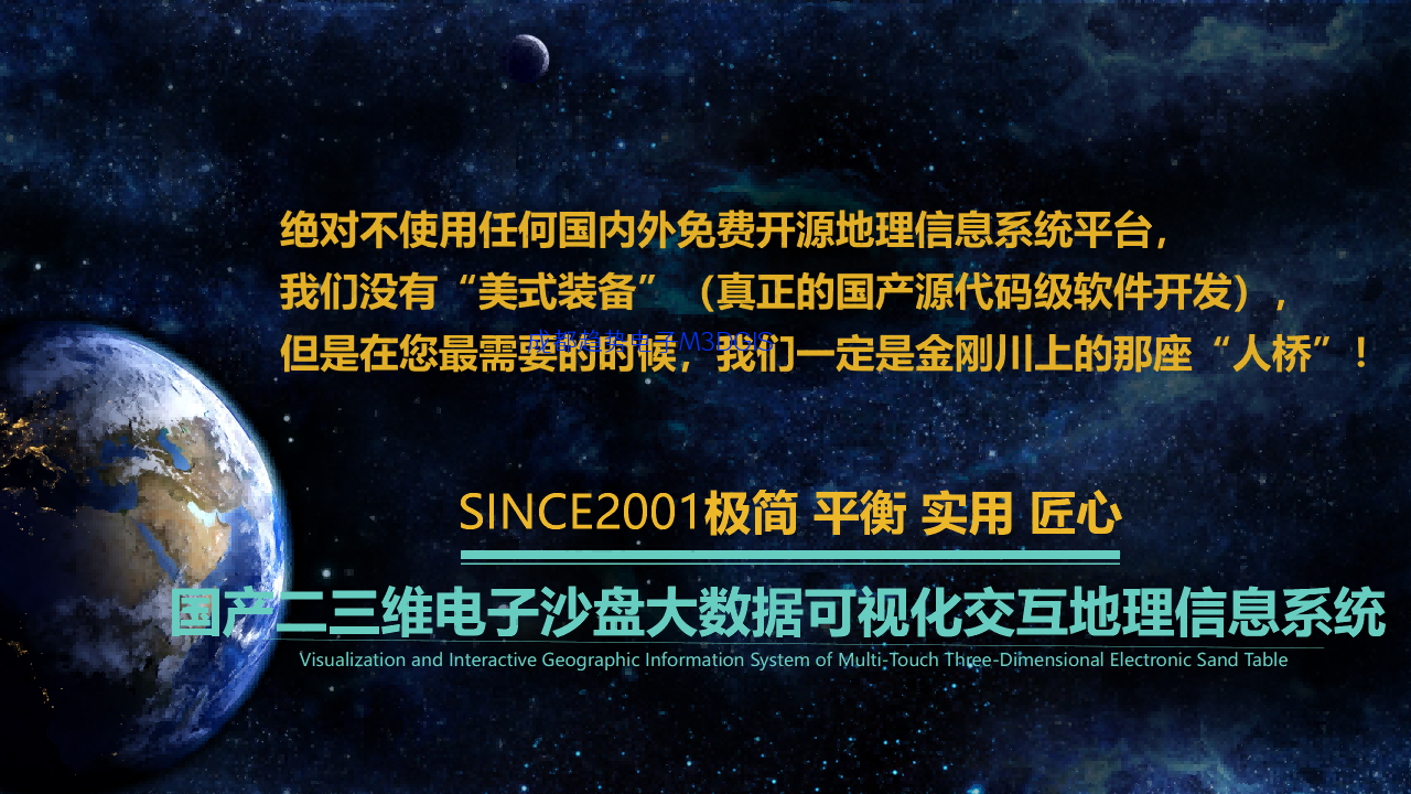 六、我司從事國(guó)防信息化建設(shè)近22年,服務(wù)用戶數(shù)千家,這22年就只做這一件事情,請(qǐng)大家相信我們的誠(chéng)意和我們的專業(yè)性,櫛風(fēng)沐雨,砥礪前行,勿忘初心!也更懇請(qǐng)大家多多支持國(guó)產(chǎn)獨(dú)立自主知識(shí)產(chǎn)權(quán)和原創(chuàng)源代碼級(jí)地理信息系統(tǒng)平臺(tái)!